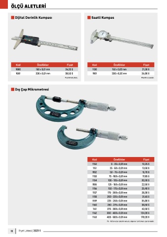 Kod Özellikler Fiyat Dişli Mikrometresi (Şapkalı) Numaratörlü Mikrometre