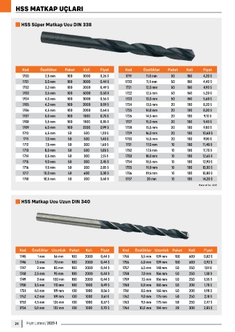 HSS Matkap Ucu Uzun DIN 340 1816 6,50 mm 10 100 2,40 $ 1841 17,00 mm 1 1 30,40 $