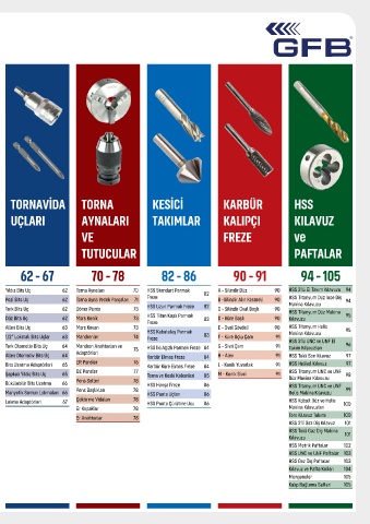 Alüminyum Freze Uçları 40 Köpük Tabancası 54 Er Kapaklar 78 Makina Kılavuzları 100