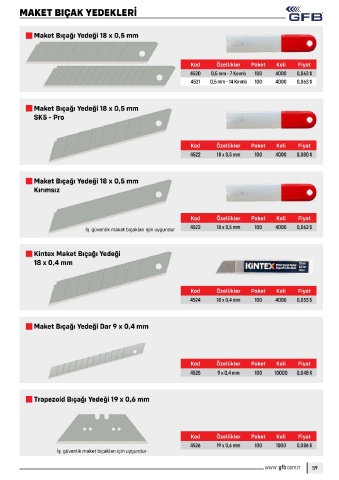 58 Fiyat Listesi / 2021-1 www. gfb com.tr 59