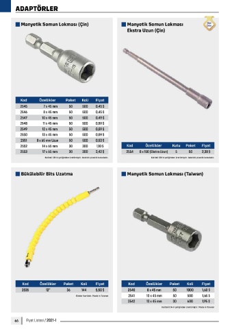 2552 14 x 65 mm 30 300 1,10 $ Kod Özellikler Kutu Paket Fiyat Kod Özellikler Kutu Paket Fiyat Kod Özellikler Kutu Paket Fiyat