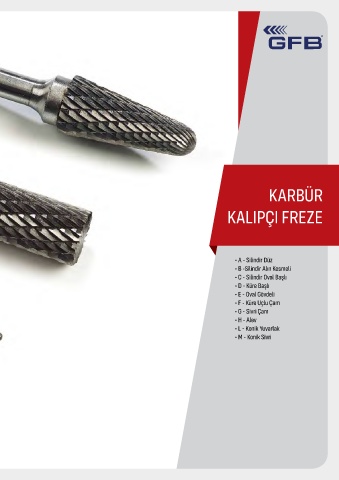 KARBÜR KALIPÇI FREZE • A - Silindir Düz • B -Silindir Alın Kesmeli • C - Silindir Oval Başlı • D - Küre Başlı • E - Oval Gövdeli • F - Küre Uçlu Çam • G - Sivri Çam • H - Alev • L - Konik Yuvarlak • M - Konik Sivri