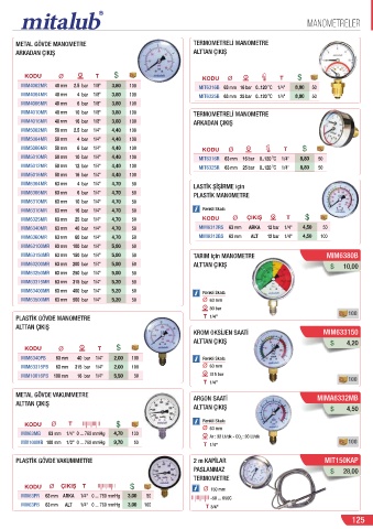 0,0 05 63 mm 60 bar 1/4" 4,70 50 0,0 %6 63 mm ALT 12 bar 1/4" 4,50 100