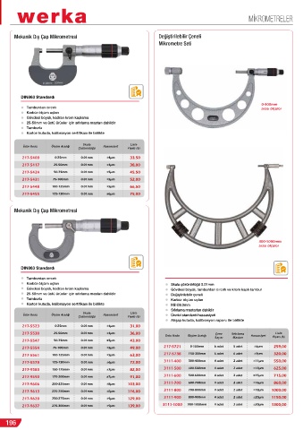 217-5561 100-125mm 0.01mm ±5µm 63,00 217-5738 150-300mm 6 adet 6 adet ±9µm 320,00