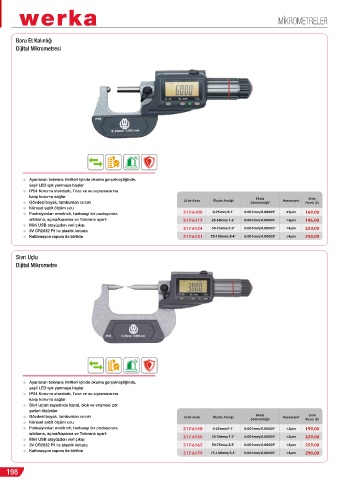 ● Fonksiyonlar: mm/inch, herhangi bir pozisyonda 217-6148 0-25mm/0-1" 0.001mm/0.00005" ±3µm 199,00