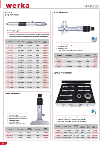 217-6209 0-200mm 0.01mm ±6µm 246,00 217-6490 20-50mm (4prç.) 25, 40mm 150mm 0.5mm 1600,00