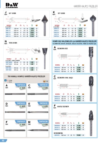 N DEMİR DIŞI MALZEMELER için KARBÜR KALIPÇI FREZELERİ
