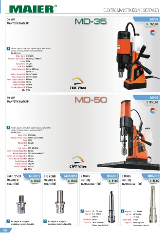 Matkap Kapasitesi 31.5 mm’e kadar MT3