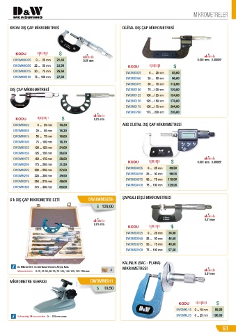 K llanıl ığı Mikr metreler 0 ... 150 mm arası DW3MKL25 0 ... 25 mm 106,00